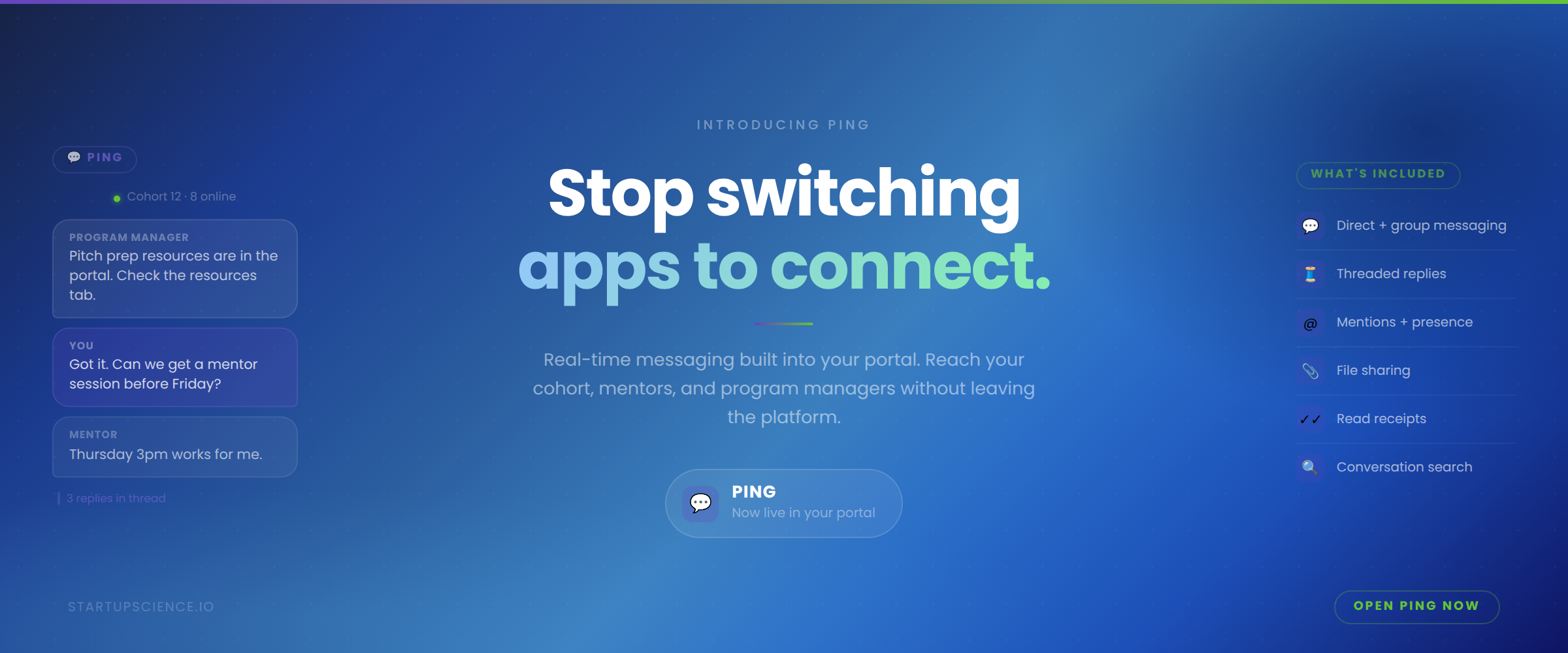 Ping: Real-Time Messaging Built Into Your Startup Portal
